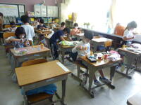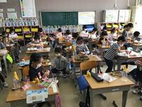 入学してから一生懸命育ててきたアサガオのつるを使って,リース作りをしました。子供たちはそれぞれ持参した飾りとボンドを使って,思い思いに飾り付けをしました。素敵なリースができるといいですね♪