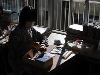 彫刻刀を用いた浮彫をテーマに,デザインを考案し,丁寧に作業に取り組んでいます。