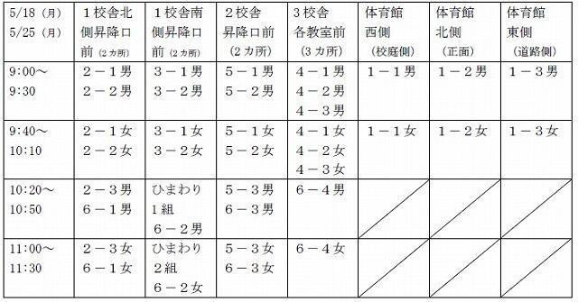 5/18,25「プリント等配付日」配付時間と場所について