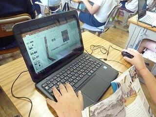 第6学年は,社会科の時間に自分で調べたことをパワーポイントを使ってまとめています。どの情報を選択するか,どのように伝えるか工夫しながら取り組んでいます。