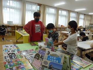 図書委員会は,紹介したい本のポップを書き,添えました。展示も図書委員会の児童が昨日準備していました。