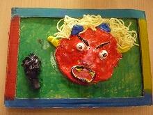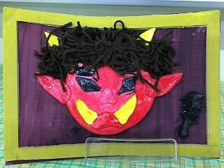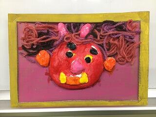 1年生と2年生は,鬼の顔を紙粘土で作りました。