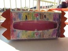 箱の飾り方を工夫して作りました。箱の形を生かした飾りを考えていました。はさみや接着剤の使い方が上手になりました。