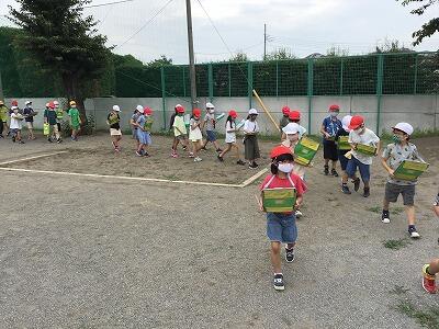 生活科の「なつとなかよし」の学習で、しゃぼん玉遊びをしました。子供たちはハンガーや段ボール、うちわのほね等、様々な道具を持ち寄って、しゃぼん玉遊びを楽しんでいました。保護者の皆様におかれましては、道具を準備していただきましてありがとうございました。