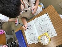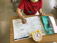 2年生では,「時こくと時間」の学習をしています。最初は,時刻と時間の言葉の意味の違いに戸惑う様子が見られましたが,時計を見て時刻を確認したり,かかった時間を計算したりと,生活に生かそうとしています。