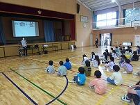 1年生は,本日の3校時に防犯教室を行いました。自分の身の守り方を教えていただき,みんなで練習をしました。代表の児童が,前に出て,実演する場面もありました。帰ったら,お家の人に今日の内容をお話しますので,お聞きいただければと思います。