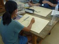 6年生の図工の学習では,絵画の授業を行っています。題材は「思いでのランドセル」です。クロムブックで写真を撮り,立体的かつ大きさ,色のバランスを意識しながら描いています。完成が楽しみです。