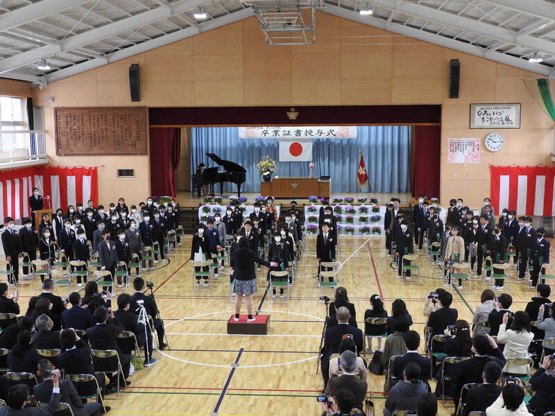 今年度は,呼びかけや合唱曲も行うことができました。退場時の表情が充実と未来へのを物語っているように思えます。4月からは,中学生です。さらなるご活躍を期待しています。