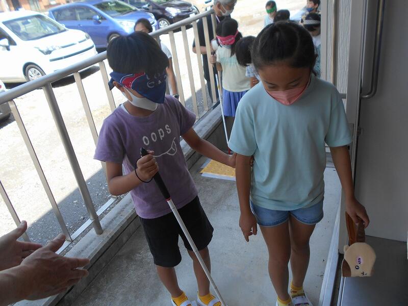 本日総合的な学習の一環で,福祉体験を行いました。実際に目を隠し,視覚障害者の方とガイドの体験をしました。目が見えない事の怖さや不安を実際に感じることができました。これからの学びに活かしていければと思います。