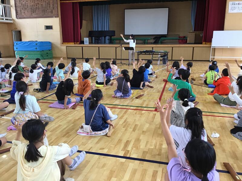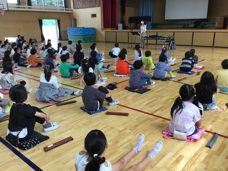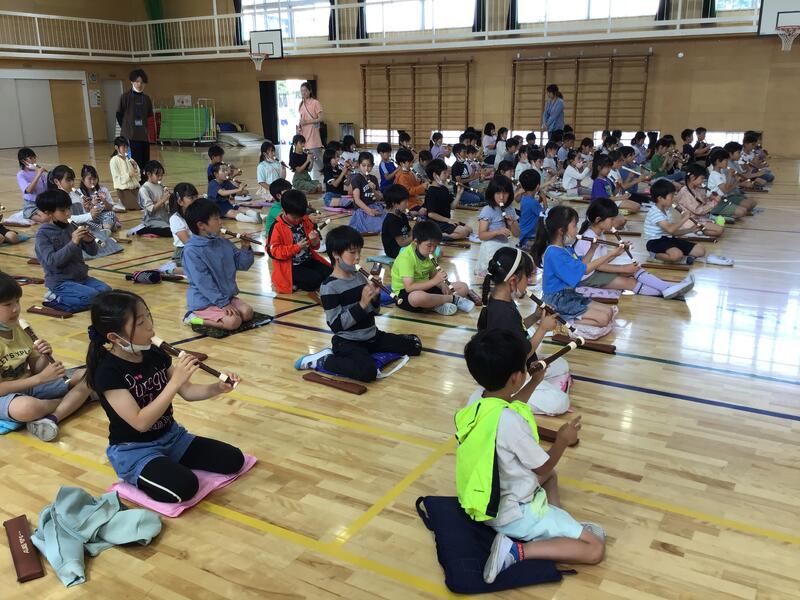 息の練習,指の練習などを丁寧に教えてもらいました。最後には様々な種類のリコーダーでいろんな曲を演奏してもらい興味津々に聞いていました。翌日からのリコーダーの練習にも身が入っています。