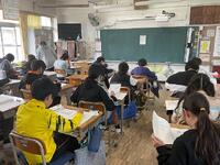 国語の記述式(解答を文章で記述する形式)の思考力や表現力が必要な問題で,かなり苦戦しているようでしたが,みんな一生懸命集中して取り組んでいました。