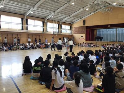 1年生からのお礼の 発表 には 体育館中から 大きな拍手が響 き温かな雰囲気で迎えることができました 。
