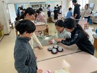 みんな,初めての家庭科室の授業でしたが,手元に気を付けながら,相談しながらていねいにお茶を入れていました。