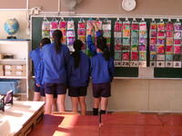 それからもう一点,本日より3年生の家庭科で作成した「フェルト絵本」の作品展示会が行われていることをお伝えします。