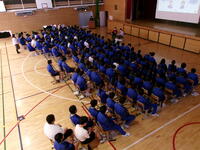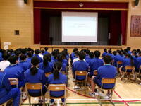 しかし,感染症の広がりは,本日2年生で予定していた「命の授業」にもその影響は避けられず,予定していた妊婦ジャケット・赤ちゃん人形抱っこ体験は行わず,保健師さんによる講演のみを体育館で視聴する形に変更,実施しました。