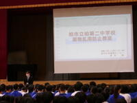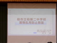 本日6校時,柏第二地区 青少年健全育成推進協議会主催「薬物乱用防止教室」が開催されました。講師の先生は,柏市少年補導センターの麻生先生にお越しいただき,薬物の種類や身体への害,お酒・たばこの害,正しい薬の使い方等について,お話しいただきました。