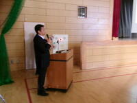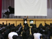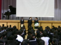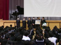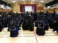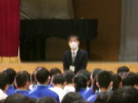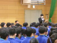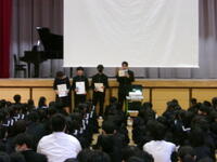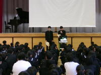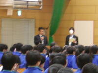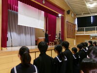 集会は「今学期の学習面や生活面を振り返り,来学期に生かす場とする。」を目的に,有言実行の表彰を生徒会から,各委員会の学年代表と各学級の中央委員から2学期を振り返り,2学年の現状を伝えました。その後は,学習面について鈴木(善)先生,生活面について山田先生,2学期を振り返る映像を視聴後に,矢内学年主任からのまとめで,集会を終了しました。