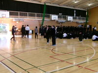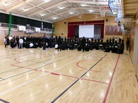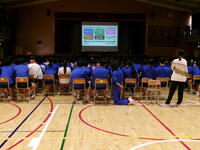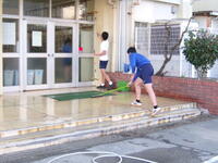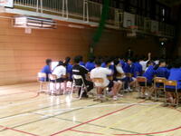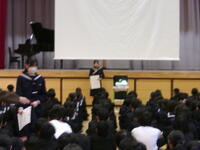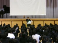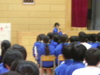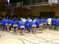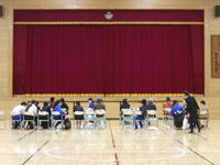 校庭から体育館に目を移すと,体育館では2年生が2学期末集会を行っておりました。