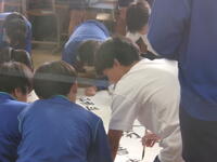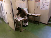 本日はもう一つ。柏第五小の3名の先生方が柏第二中に研修に来られ,中学生の日常を見ていただきました。
