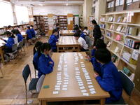 1年生の国語では,一足早く,百人一首のかるた取りが行われていました。