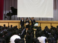 演奏されました曲は,「僕らはまた」,「クリスマスメドレー」,アンコールに応えて「マツケンサンバ」でした。コンサートを見に行けないのではの心配が的中してしまいましたが,職員室に戻ってきた職員の顔は一様に笑顔で,吹奏楽部からのクリスマスプレゼントに,大満足の様子でした。吹奏楽部のみなさん,企画から準備,そして本番の演奏まで有難うございました。機会がありましたら,また案内状の配付をお待ちしておりますので,よろしくお願いいたします。ご家庭におかれましても,本日の夕食等の折に,話題としてください。よろしくお願いいたします。