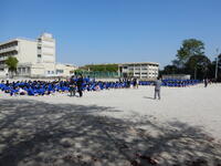 暑い中でしたが、新しく着任された先生の紹介、表彰などがあり、久々に体育館に集まりました。