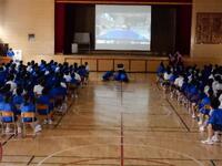終業式では、久しぶりに全校で校歌を歌い、校長先生のお話を聴きました。