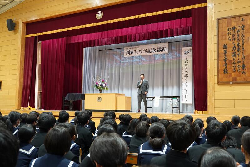 本校卒業生でセレッソ大阪所属の山中亮輔さんを講師にお招きし、「夢 ~君たちへ送るメッセージ~」という演題でお話しいただきました。日本代表・オリンピック・Jリーグでの活躍や苦労を通して、頑張っているから今があることやプロの厳しさを教えてくれました。