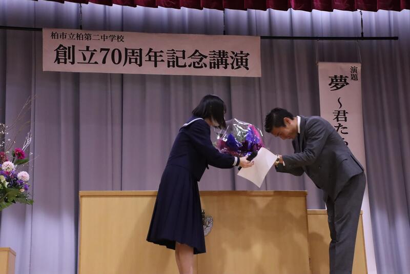 夢に向かって「傾聴力・思考力・主張力」「Big Heart」を大切にすること、自分の「武器(長所)」を磨くことなど、楽しくそして分かりやすくお話ししてくださいました。講演の時間があっという間に過ぎてしまいました。素晴らしいひとときでした。
