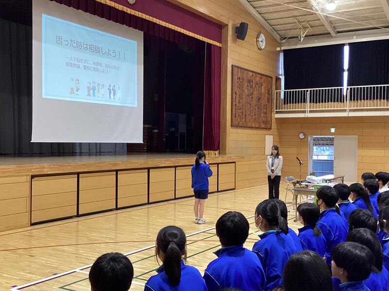 また、武道場では保健師による講話をきき、思春期や命についての学びを深めました。
