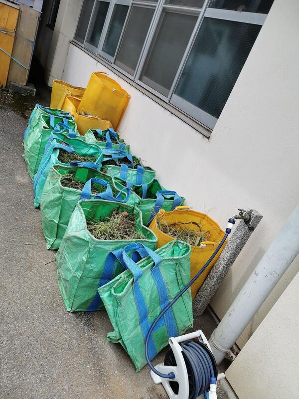 暑い中でしたが、多くのボランティアの保護者様に校庭などの除草作業をしていただき、とてもきれいになりました。本当にありがとうございました!!