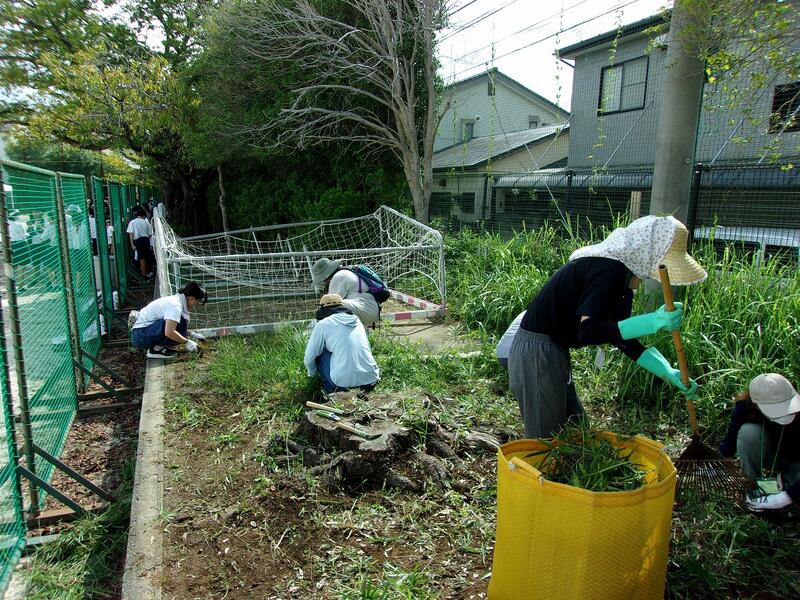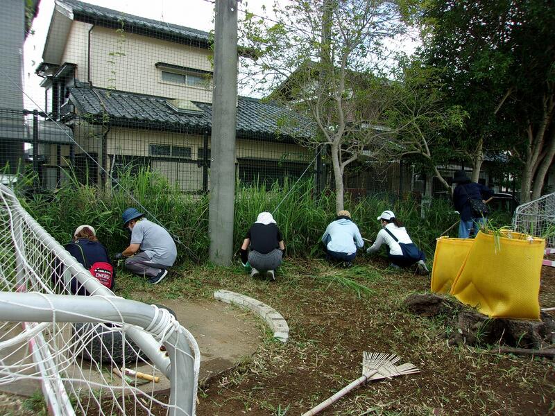 暑い中でしたが、多くのボランティアの保護者様に前回できなかった箇所の除草作業をしていただき、