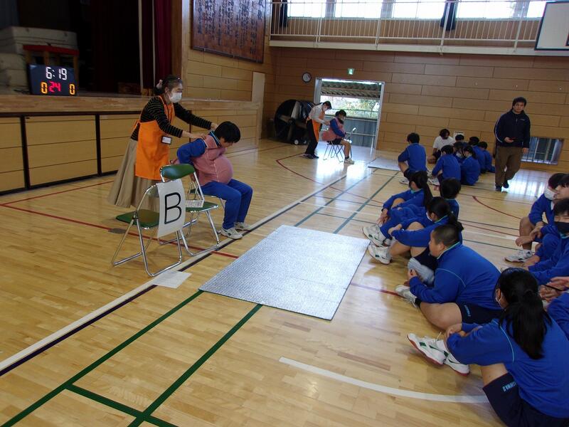 体育館では地域の方を講師に招いて、妊婦体験や赤ちゃん人形体験を実施し、貴重な体験ができました。