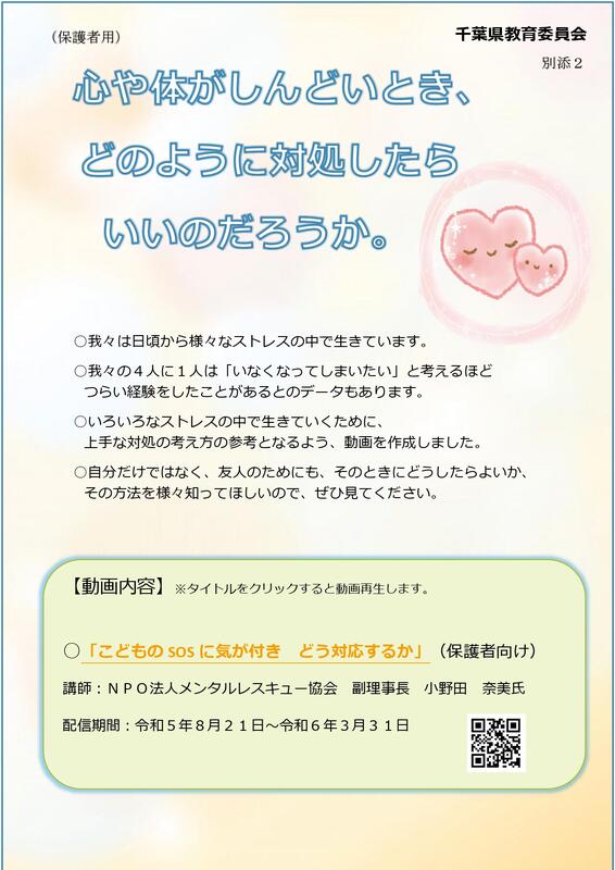 また、県教育委員会が制作した保護者向け啓発動画を視聴していただくなど、取組への御理解と御協力をよろしくお願いいたします。