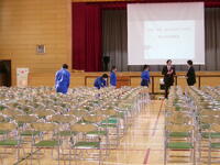 20分と短い時間でしたが,300席をすべてステージ下から引出し,縦15席,横20席の形に作り上げました。身体も大きくなると共に,男子は力強さも加わって,新年度に先輩となるにふさわしい働きぶりでした。