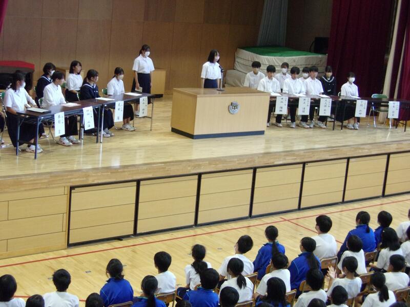 立候補者は、立候補理由や役員になった際に取り組みたいことなどを全校生徒の前で演説しました。