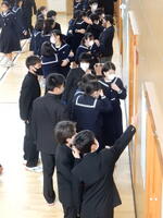 全校で避難訓練を実施しました。1年生も含めて改めて避難経路の確認をしました。「いざ」という時のために備える大切さを学びました。