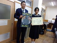 防犯ポスターコンクールに、本校から2名の生徒が受賞しました。柏警察署の方にお越しいただき、表彰をしていただきました。