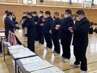 2学期に、たくさんの団体や個人が優秀な成績を収めました。全校での表彰ができないので、該当者のみで表彰集会を行いました。