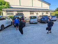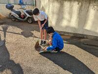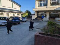 柏5小の2年生が町探検に訪れました。校内を見学して、いつか自分たちが通う校舎を見て小学校との違いについて学びました。