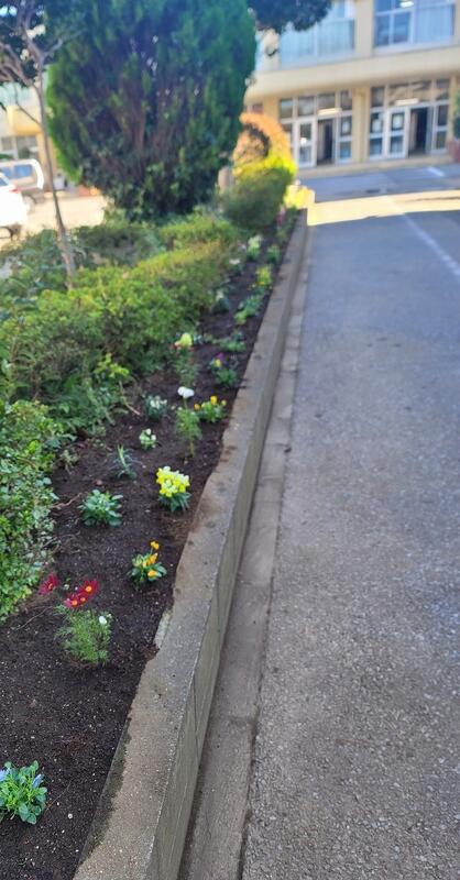 保護者様に生徒昇降口まえの花壇づくりをしていただき、きれいなお花を植えてきました。本当にありがとうございました!