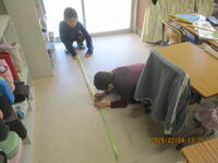 2月4日(水)2年生算数「長さ」の学習です。3mの紙テープを作るために,1mものさしで10cmごとのめもりを書いています。この後,教室や学校の気になる場所の長さを測ります。どんな物を測るか楽しみですね!