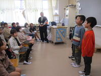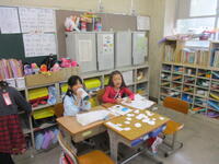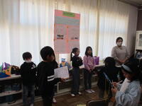 本日は,若葉保育園とホザナ幼稚園の年長さんたちが,学校に来て1年生と遊びました。今日は,自己紹介の後,1年生が国語の学習で作ったお話し文を,年長さんに聞いてもらいました。「小学校に入ると,こんなに難しいお勉強もするんですね」と,先生方も驚いていました。