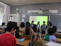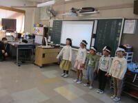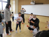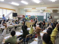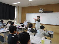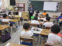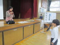 市内にお住まいのけん玉名人の佐藤海斗さんを招き,1年生の特別授業を行いました。はじめに基本11の技を披露していただき体験しました。玉の動かし方や手首の使い方なども丁寧に教えていただきました。最後は素早い動きのけん玉パフォーマンスを見せていただきました。初めてできるようになった子もたくさんいました。これからもたくさん練習しましょう。