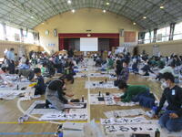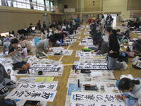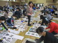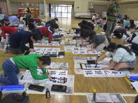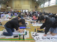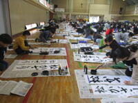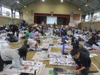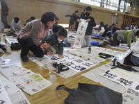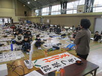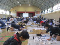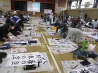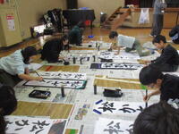 市内で学校の書写指導を行っている立林先生を講師に迎え,書き初め練習会を行いました。
