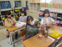 1学期から大切に育ててきたアサガオの観察や種の収穫を終え,鉢の片付けを行いました。茎は丁寧に支柱からはがして,丸めています。なんと手作りリースの台座ができました。乾燥させた後,飾りをつける予定です。