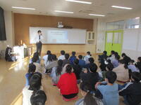 少年補導センターの朝生指導主事をお招きして,「これからの時間を大切にしていくために」という話をしていただきました。中学生生活についてから始まり,薬物乱用防止,スマホやSNSのトラブル防止,冬休みの生活についてお話ししていただきました。「これからの時間を大切にして,中学校への準備をしていきたい」「スマホやSNSと上手に付き合っていきたい」などの感想が発表されました。