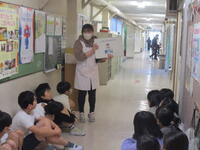 昨日15日は,学校医の石崎先生による,歯科指導がありました。口の中が汚れるしくみから学び,歯を磨くことの大切さを知ることができました。後半は歯の磨き方を一緒に練習しました。