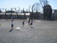 4年生はサッカーです。基本のドリブルを学ぶために,「先生の出した数字を当てるゲーム」や,「だるまさんが転んだアレンジゲーム」などで学んでいます。