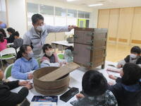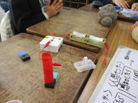身近なものを使って,動くおもちゃを作っています。できあがったものは,1つ1つの動きが異なり,とても面白いです。遊びながらお互いの良さを確認しあいました。